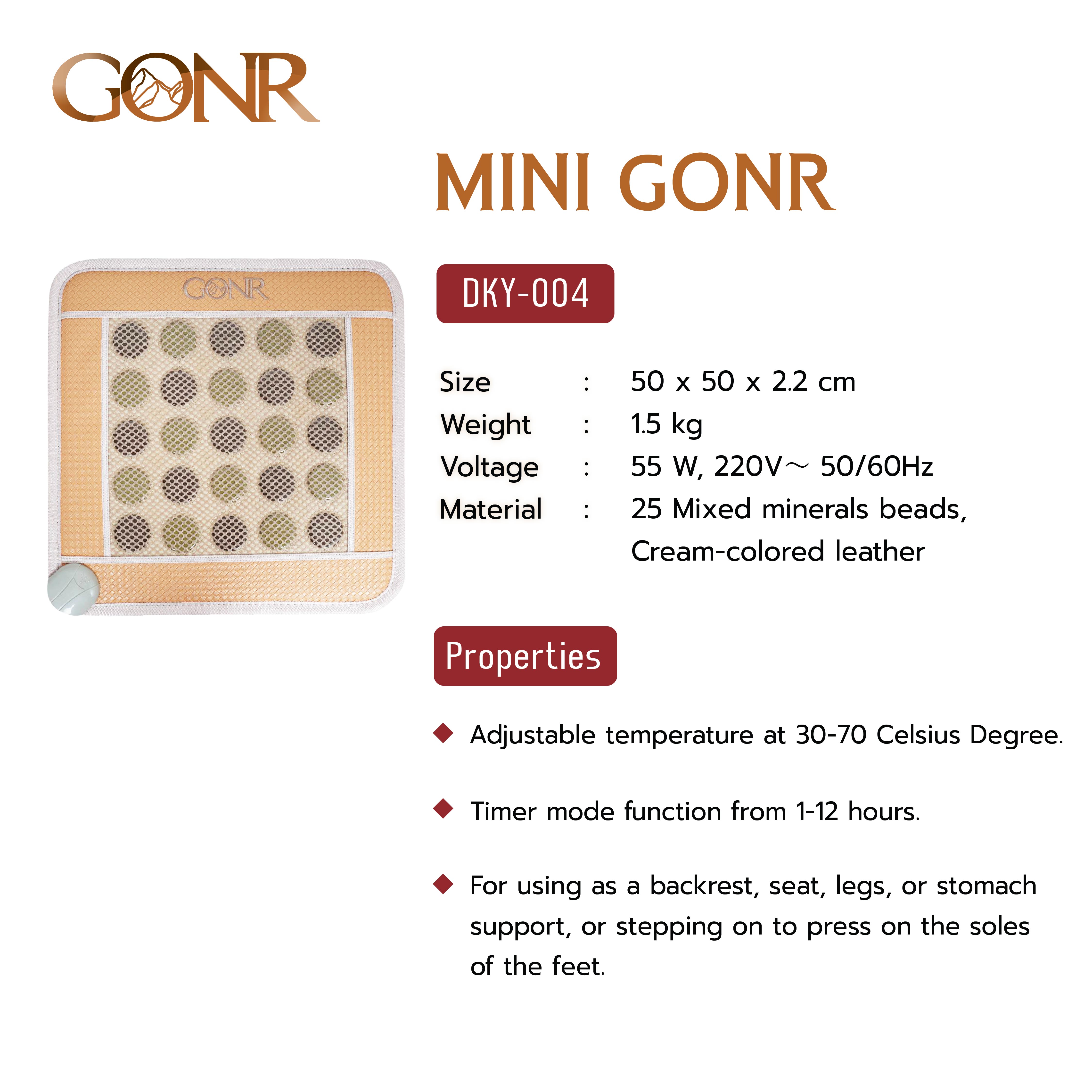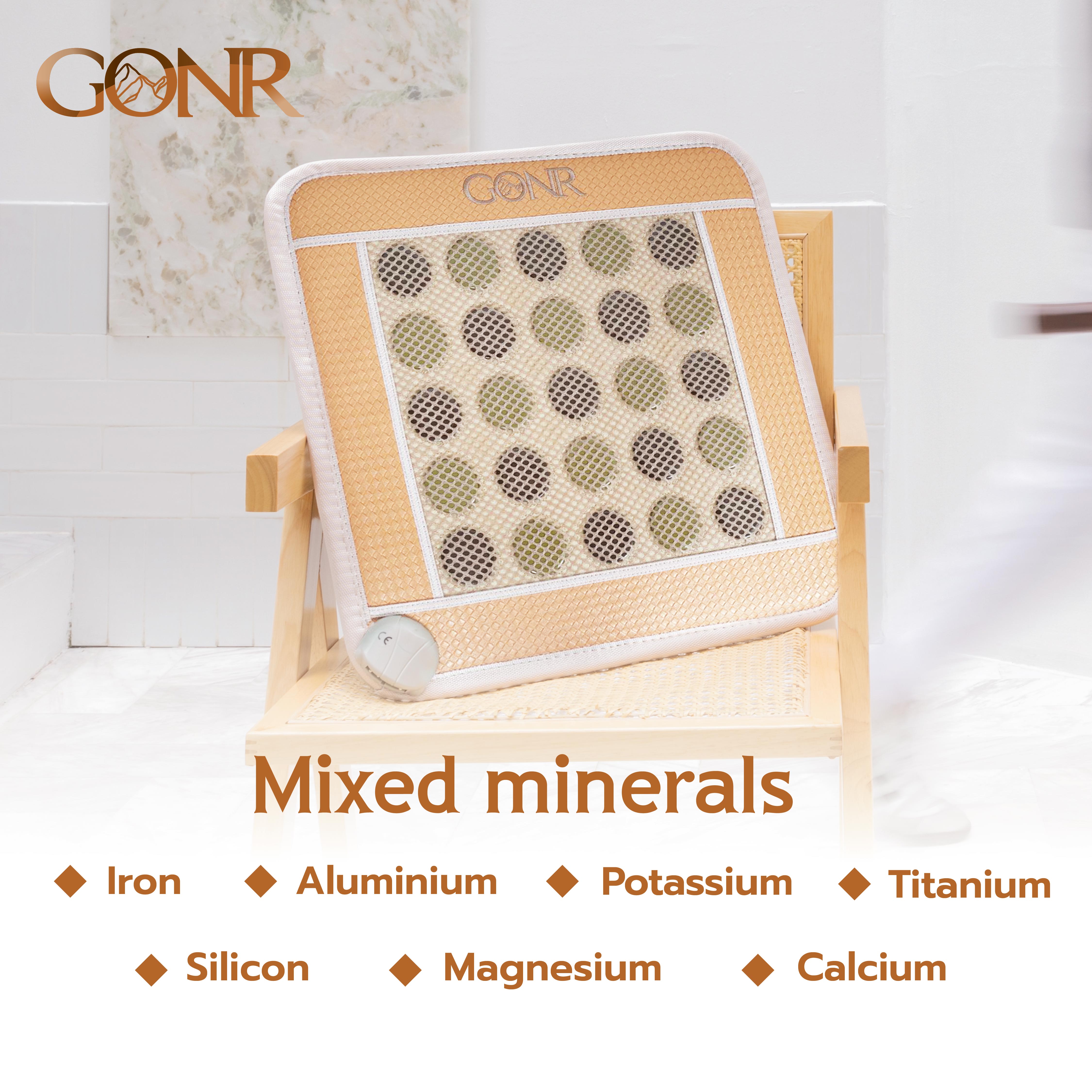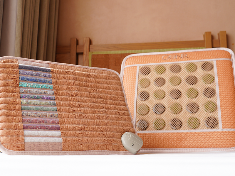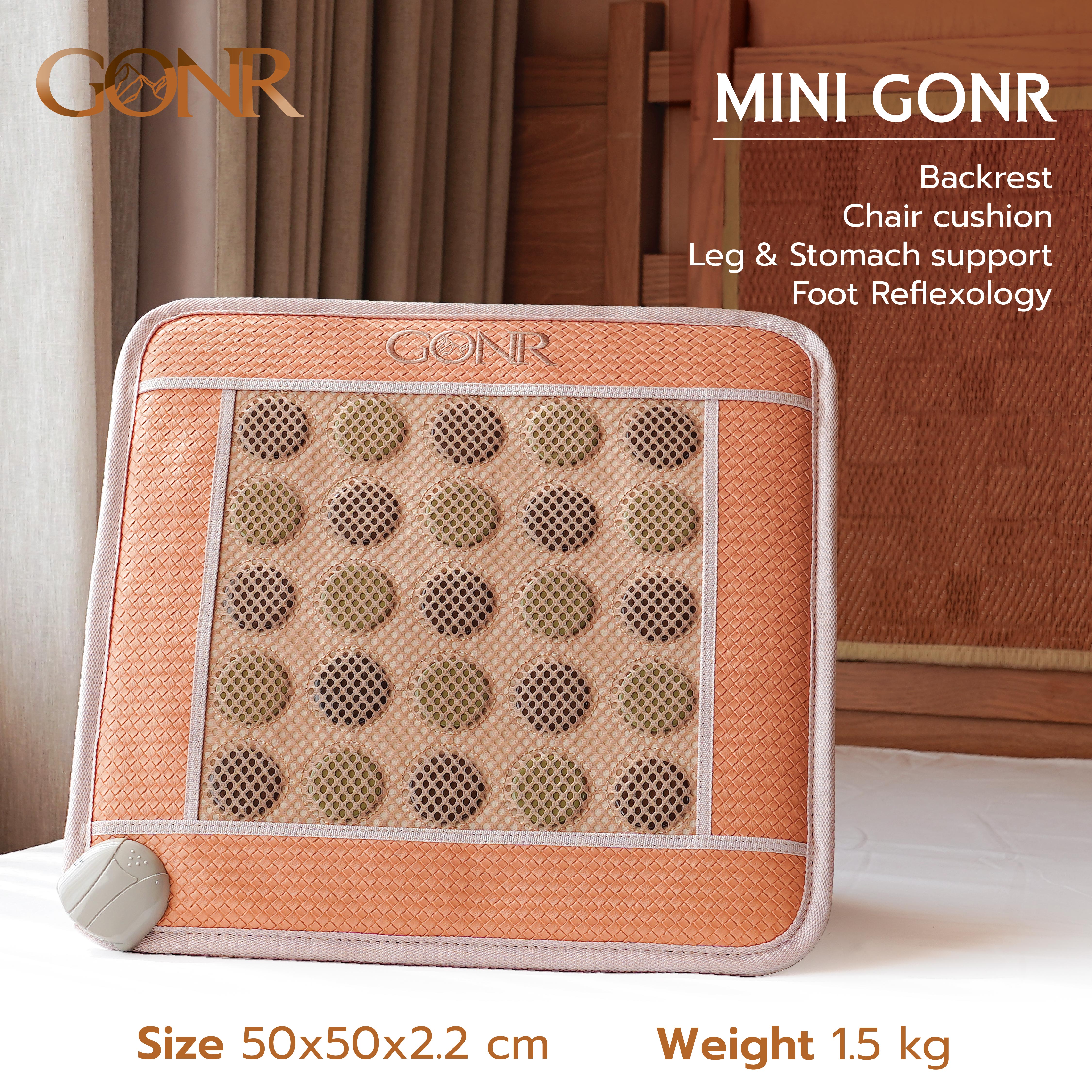 รุ่น ปูบนเก้าอี้ /ประคบเฉพาะจุด /และใช้ร่วมกับรุ่นอื่นๆ / ขนาด: 50 x 50 x 2.2 ซม. / น้ำหนัก 1.5 กก. / มี หินอัดผสมแร่ธาตุรวม 25 เม็ด