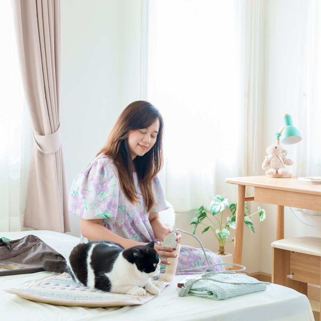 • ปูบนเก้าอี้ เตียงนอน หรือบนพื้น