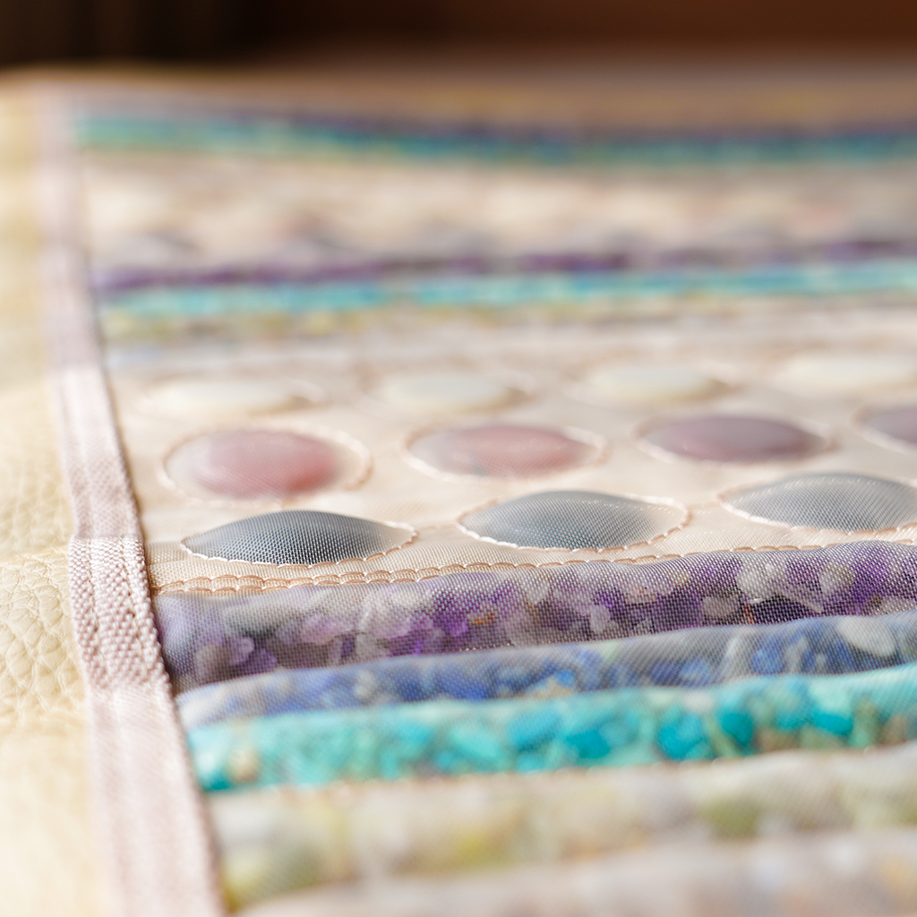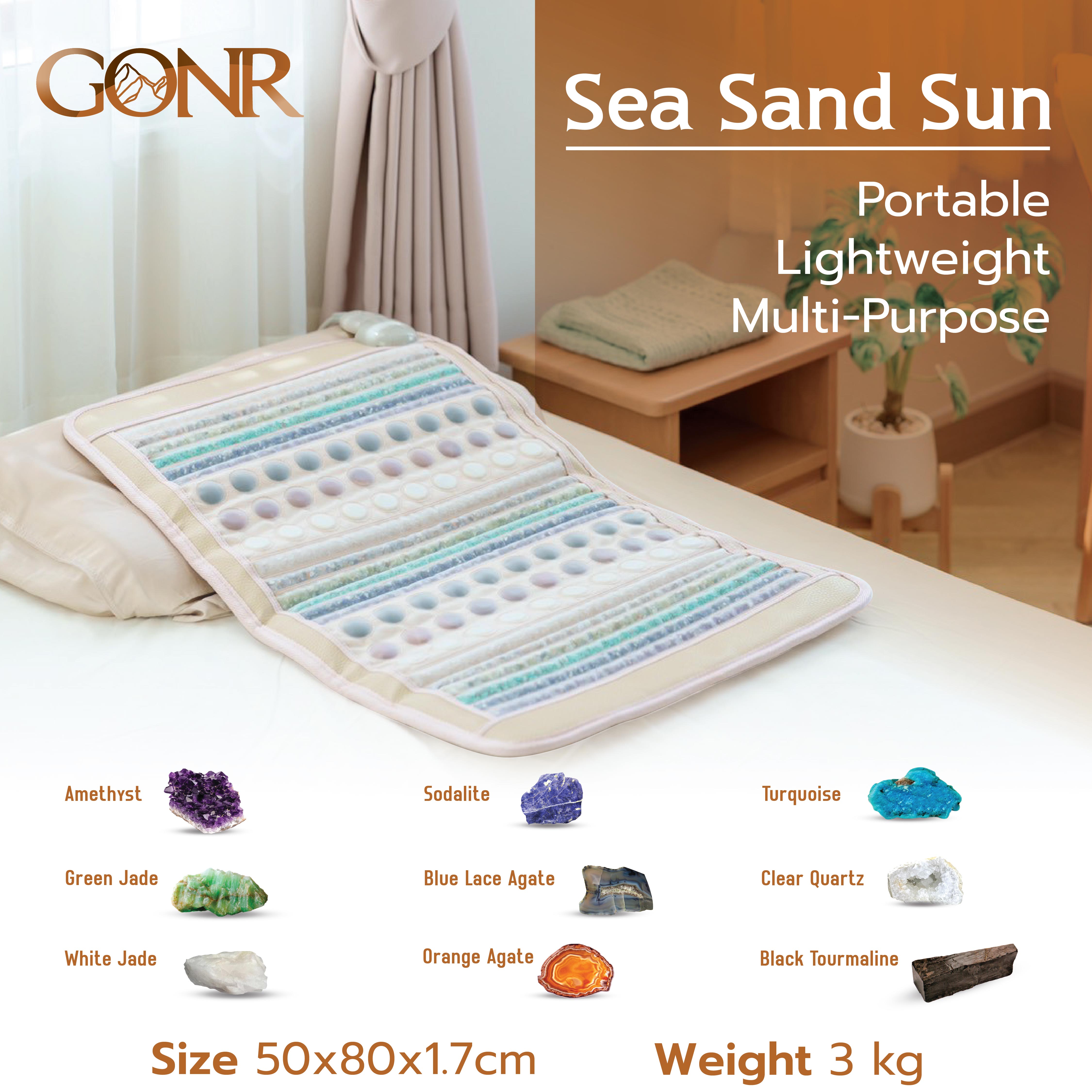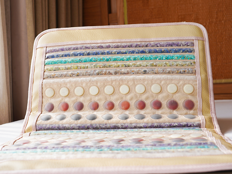 รุ่น ปูบนเก้าอี้ทำงาน /นอนพักผ่อน และใช้ร่วมกับรุ่นอื่นๆได้ยาวครึ่งตัว / ขนาด: 50 x 80 x 1.7 ซม. / น้ำหนัก 3 กก. / มี หินทั้งหมด 9 ชนิด