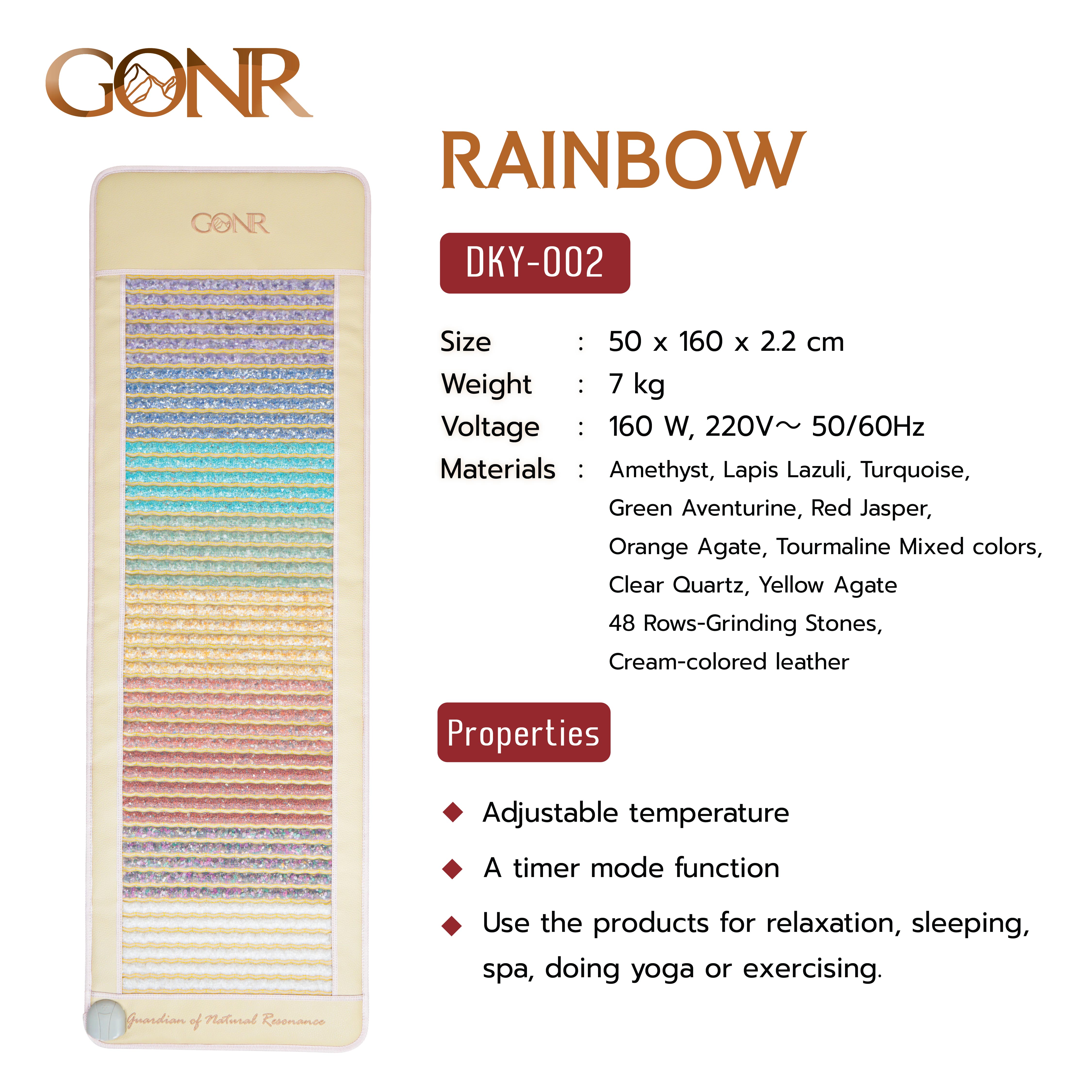 รุ่น ปูสำหรับนอนพักผ่อนแบบยาวเต็มตัว /ออกกำลังกาย / ขนาด: 50 X 160 x 2.2 ซม. / น้ำหนัก 7 กก. / มี หินทั้งหมด 9 ชนิด